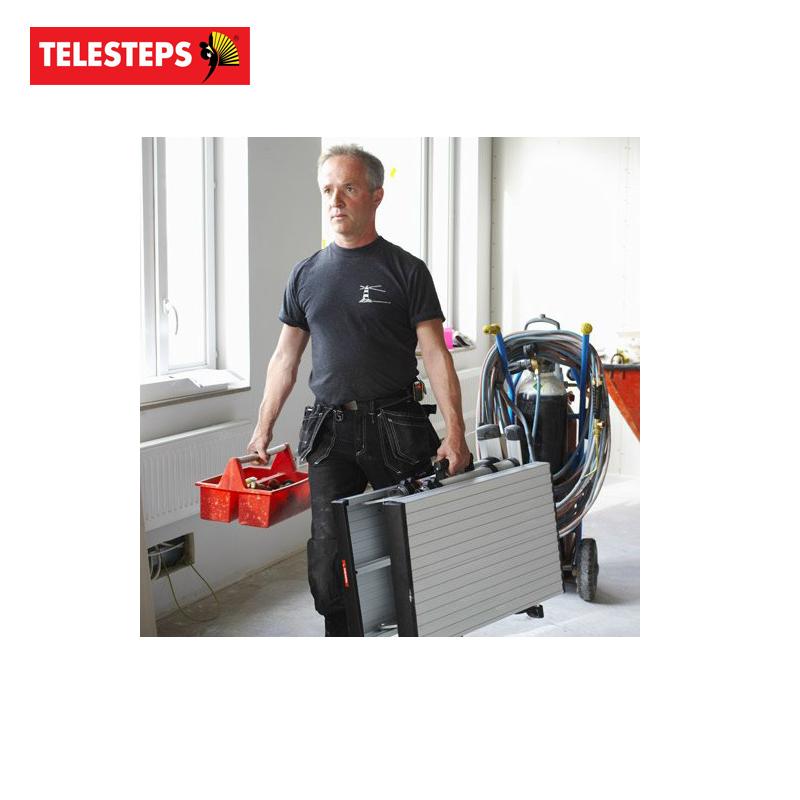 Sometimes there is a need both to reach a higher working position and be able to work across slightly larger areas at the same time. With Telesteps working platform the height can be adjusted at three different levels without sacrifi cing stability and safety. Some of the advantages of your purchase are that it is quick to push together, easy to carry, and takes up little space. It also has a built-in handle so you can easily carry it away.